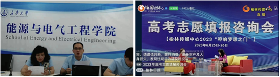 线下招生进行的同时,线上招生宣传顺利开展,学院招生专员姚秋霞副教授与陈占明副教授、崔军卫博士共同参加了由天津市教育招生考试院组织的为时90分钟的2023天津高校线上宣讲活动。在榆林举办的高考志愿填报咨询会上,姚秋霞招生专员受邀进行现场咨询采访的视频录制,结合我校的整体情况和学院学科发展优势,对我校办学情况、就业升学、特色专业、校园文化等情况进行了详细解读。