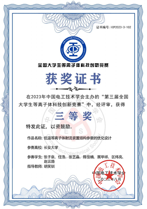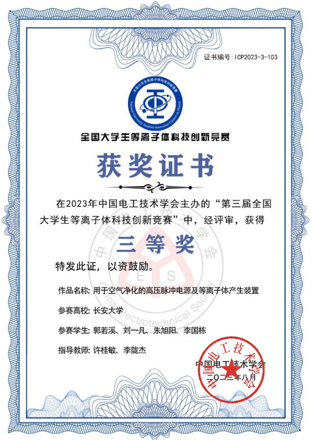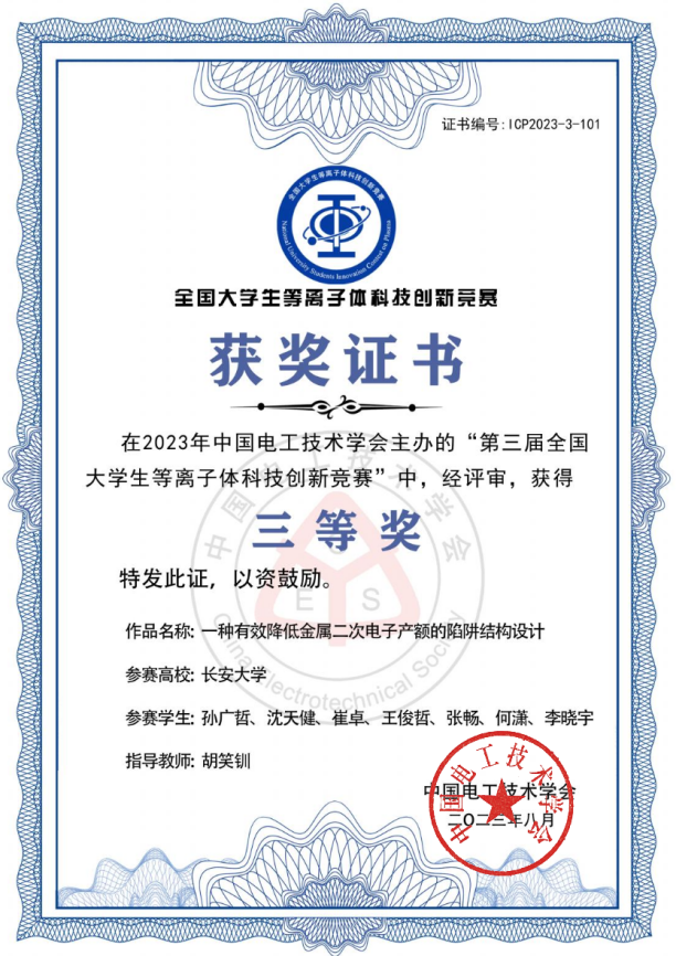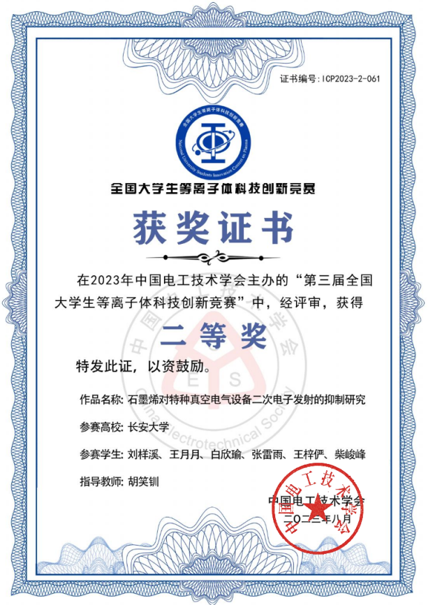 由中国电工技术学会主办的第三届全国大学生等离子体科技创新竞赛决赛于2023年8月在武汉顺利举办。竞赛自2023年4月20日启动以来,共收到全国90余所高校和科研院所的350多件参赛作品。经过严格的网络评审,共遴选出140件作品进入决赛。ac米兰官网中文网站学生刘样溪、张子泉、孙广哲等人在胡笑钏、许桂敏老师的指导下,经过严格的网络评审、现场评审和答辩评审环节,最终斩获全国二等奖1项、三等奖3项。