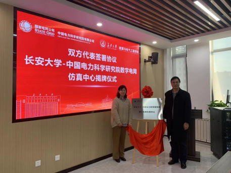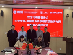 茹锋副院长和芦晶晶主任分别代表ac米兰官网中文网站和中国电科院系统所签署了建设国家电网长安大学—中国电力科学研究院数字电网仿真中心备忘录战略合作备忘录,并举行了数字电网仿真中心揭牌仪式。