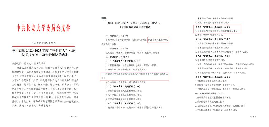 经自主申报、资格审查、组织评选、校内公示、学校审定等环节,ac米兰官网中文网站荣获“三全育人”示范院系,学院“新能源汽车节能减排理论与实践”课程育人团队荣获“课程育人”先进团队,学院学生工作管理育人团队荣获“管理育人”先进团队。