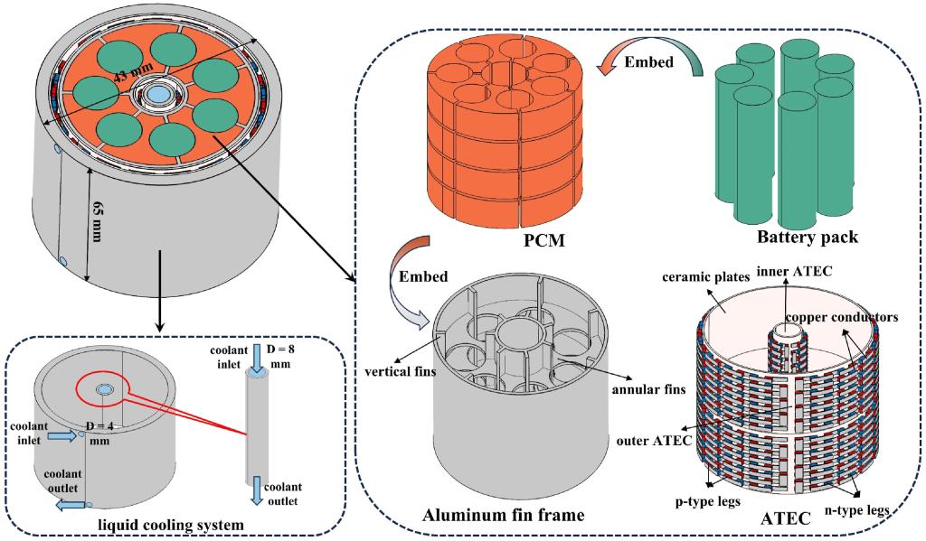 论文信息:Luo D, Wu Z, Chen H, Geng L, Zhang W. Thermal performance of an active battery thermal management system combining annular thermoelectric coolers and phase change materials. Renewable Energy 2025;249:123278.