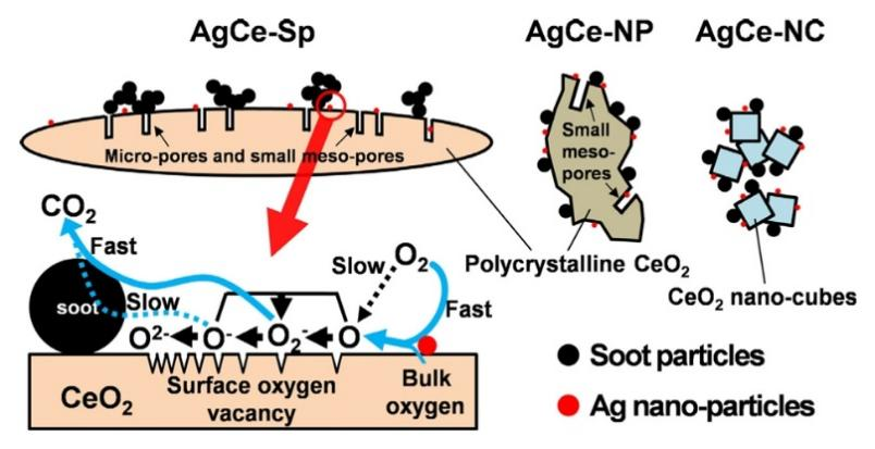 图4. 利用Ag/CeO2 催化剂氧化烟尘的示意图