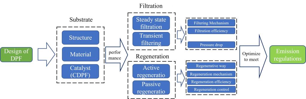 为应对空气污染与气候变化,全球排放法规日趋严格,柴油颗粒过滤器(DPF)作为关键后处理技术,需持续优化以满足标准。这篇文章系统地分析了当前柴油颗粒过滤器的技术发展趋势。不仅回顾了DPF 为适应更严格排放标准的技术演变路径,还深入探讨了过滤技术的前沿进展,包括新材料的应用和提高过滤效率的策略。同时,也回顾了再生技术的最新研究成果,特别是那些旨在提高再生效率和减少再生过程中污染物排放的新方法。