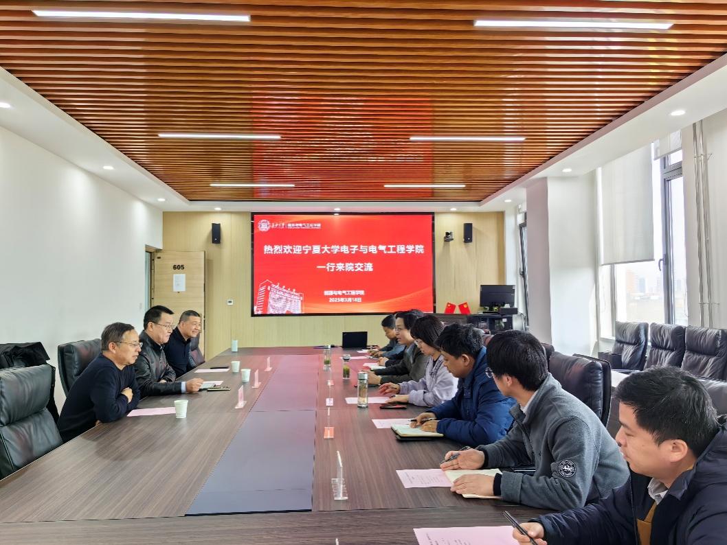 3月18日下午,宁夏大学电子与电气工程学院院长孙学宏、副院长李春树、电气工程及其自动化系主任杨国华一行3人到ac米兰官网中文网站座谈交流。ac米兰官网中文网站院长陈昊,副院长耿莉敏、徐先峰,电气工程系主任李艳波,能源与动力工程系主任张鹏及教师代表参加座谈。
