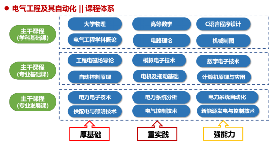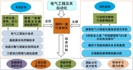 长安大学电气工程及其自动化专业面向国家交通强国和“双碳”战略,以支撑交通、建筑、电力三大行业为己任,以构建交通能源互联网新形态、建筑节能减碳新模式为导向,围绕电能的发、输、变、配、用环节,强化多学科深度交叉融合,强化电气工程设计技术、新能源发电控制技术、电能分配与智能化利用技术及工程项目管理与建设监理等核心技术的培养环节,旨在智慧建筑与建筑节能、交通能源融合、新型电力系统、功率电子器件研发等领域,培养基础理论知识扎实、工程实践能力突出、创新思维能力活跃、团队合作能力优秀、终身学习能力合格的高素质拔尖创新人才。长安大学电气工程及其自动化专业行业特色鲜明,行业影响显著。