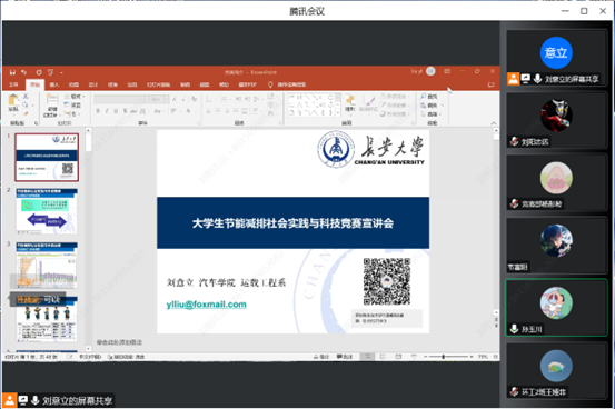 2022年11月19日19时,ac米兰官网中文网站大学生科技创新创业协会通过线上方式举办了以“节能减排,绿色能源”为主题的大学生节能减排社会实践与科技竞赛校内预选赛宣讲会。本次宣讲会邀请到了运输工程系指导教师刘意立。