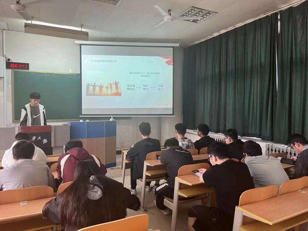 宣誓结束后,由优秀共青团员向大家讲述了崔景岳烈士的光辉事迹。随后大家在修远一区1106教室开展“弘扬五四精神,当好突击队员”主题团史学习教育,重温革命历史,感悟中国共产党人艰苦奋斗、不屈不挠、抛头颅洒热血的奋斗历程,全体团员青年在思想上受到了深刻的洗礼。活动最后,全体共青团员齐声歌唱《光荣啊,中国共青团》,共同抒发青春正能量和磅礴动力。