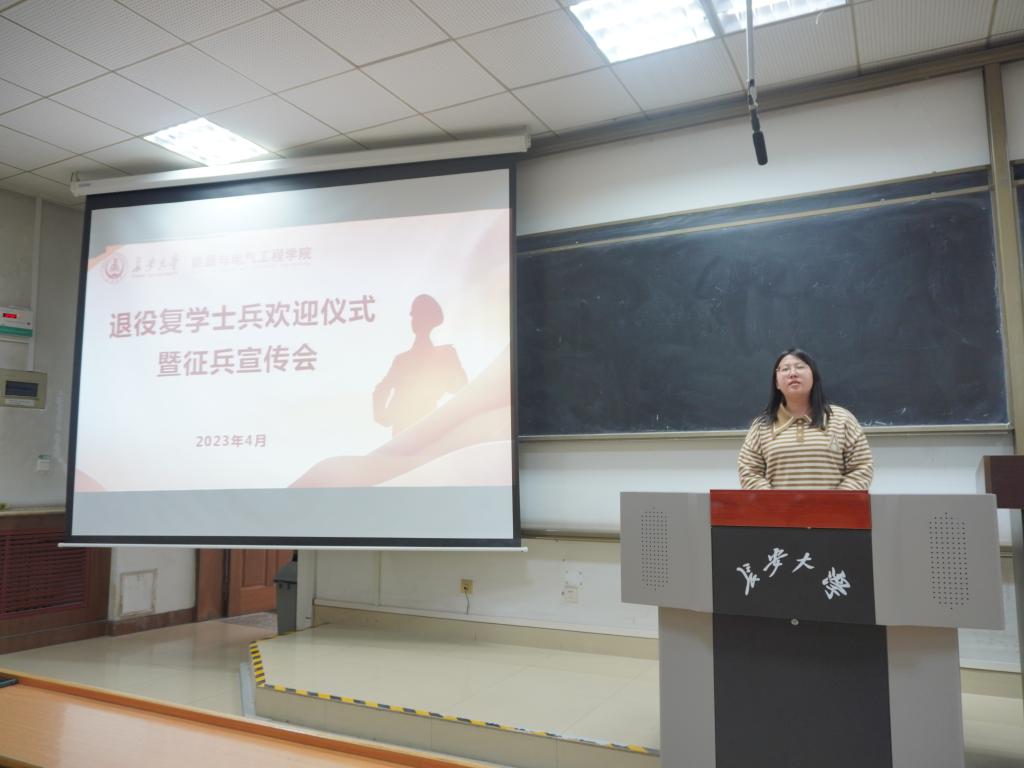 为帮助退役大学生士兵尽快转变身份、融入学校生活,激发ac米兰官网学生爱国情怀、增强报国信念,ac米兰官网于2023年4月23日中午12:40在WT1102举行退役复学士兵欢迎仪式暨征兵宣传会。ac米兰官网学生办公室主任李金檑,2021级辅导员刘欣出席欢迎仪式。