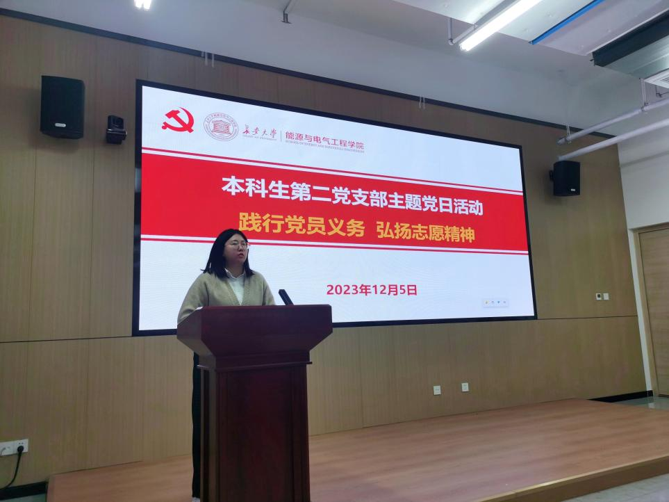 12月5日是第38个国际志愿者日。为教育全体党员同志弘扬“奉献、友爱、互助、进步”的志愿精神,发挥党员先锋模范作用,立志做有理想、敢担当、能吃苦、肯奋斗的新时代好青年,ac米兰官网中文网站本科生第二党支部于2023年12月5日在学院612会议室召开“践行党员义务,弘扬志愿精神”主题党日活动。本次活动由党支部书记刘欣主持,本科生第二党支部全体党员参会。