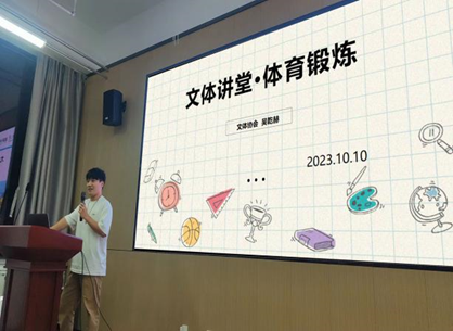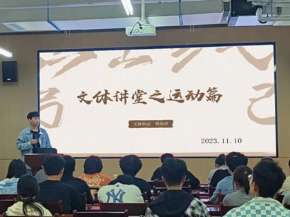 为了激发学生的体育兴趣,促进身心健康,ac米兰官网中文网站文体协会举办了“文体讲堂”系列活动,为同学传播科学锻炼、安全运动的知识,吸引了众多同学的积极参与。