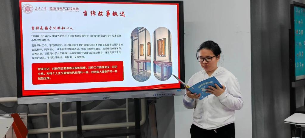 活动中,吴宇宁同学通过讲述雷锋同志的日记故事,为团支部成员上了一堂意义深刻的主题团课。