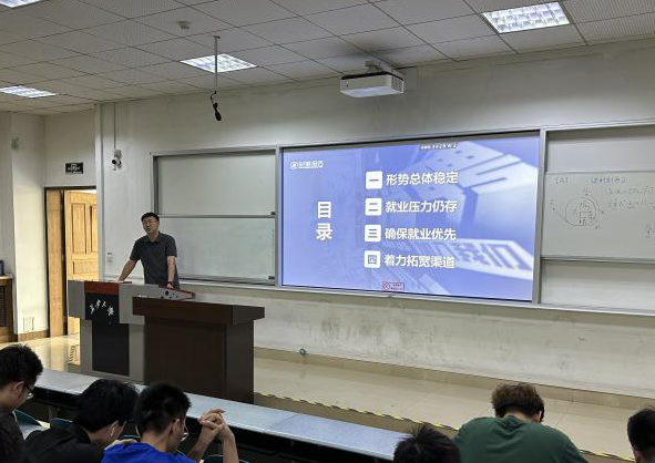 5月21日,ac米兰官网中文网站于WT1101教室开展了就业形势分析与征兵宣传专题培训。本次培训会由学办主任李金檑和2020级本科生区炜亮主讲,2024届毕业生参加培训。