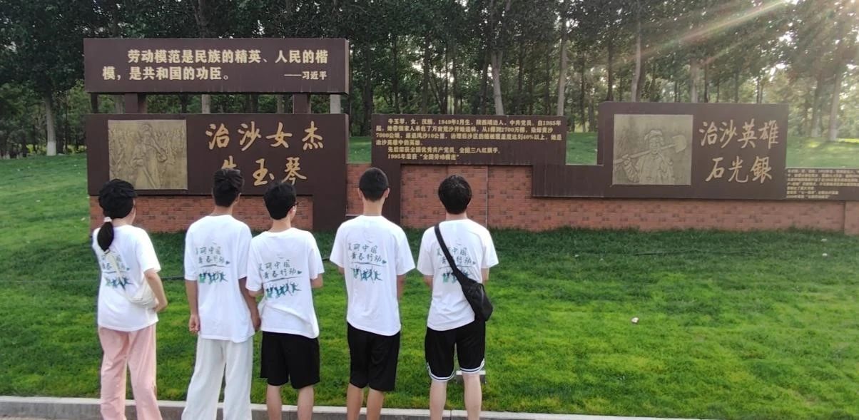 在“劳动模范文化长廊”的巡展中,实践队员详细研读了牛玉琴、石光银等治沙英雄的事迹碑文。面对榆林市曾经脆弱的生态环境,面对严峻的水土流失和沙尘暴问题,正是这些治沙英雄们用实际行动守护着生态环境,让黄土高原重焕生机。习近平总书记曾评价道:“劳动模范是国家的脊梁、民族的骄傲、人民的楷模。”从他们的感人事迹中,实践队员深切领悟到了英雄楷模的崇高精神,并深刻认识到生态环境治理对于地区和人民的重要性。