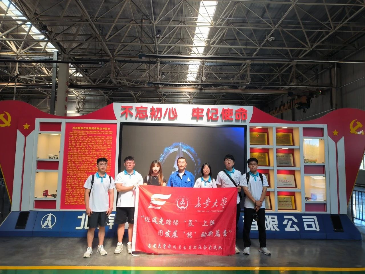 习近平总书记指出:“国有企业是中国特色社会主义的重要物质基础和政治基础,是党执政兴国的重要支柱和依靠力量”。国资国企在建设现代化产业体系、构建新发展格局中发挥了巨大作用,为进一步调研国有企业在推动国家能源现代化改革的推动作用,7月16日,在宿雨心老师的带领下,长安大学ac米兰官网中文网站赴内蒙古“迎风光踏绿‘氢’上阵·图发展‘能’动新篇章”暑期社会实践队前往中国兵器工业集团北奔重型汽车集团有限公司进行参观调研。