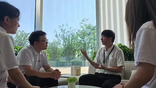 参观完总装车间后,团队成员来到了全球最大的蔚来中心,在这里团队成员与工作人员进行了讨论交流。