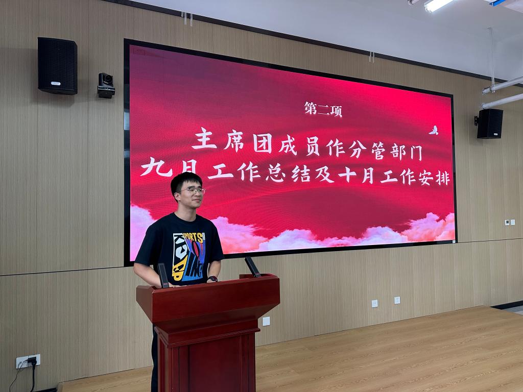 紧接着曹鹏飞和叶培分别就各部门的工作提出了具体要求。强调各部门要紧密配合,落实工作细节,确保每项活动的高质量推进。同时,鼓励各部门负责人在工作中加强创新思维,提升活动的影响力和参与度。各部门负责人对9月份的工作亮点和不足进行了详细的汇报。大家不仅分享了工作中的成功经验,还坦诚地指出了存在的问题,并针对10月份的工作安排对各部门的职责进行了进一步的明确与分工,力争在未来的工作中取得更好的成绩。