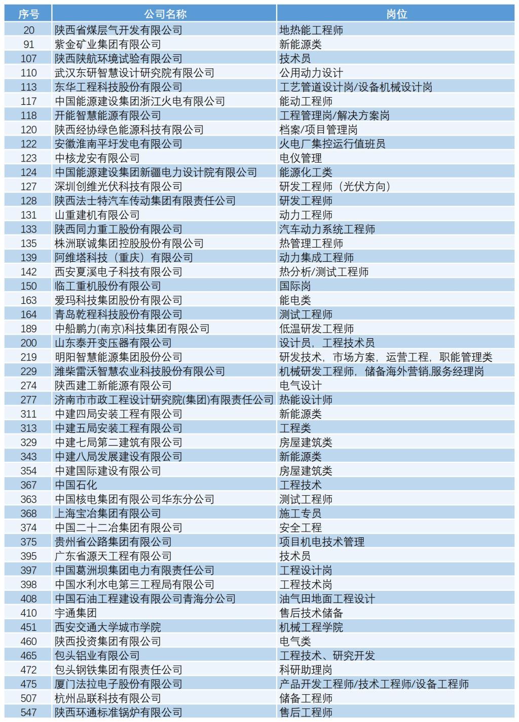 动力类企业信息一览表