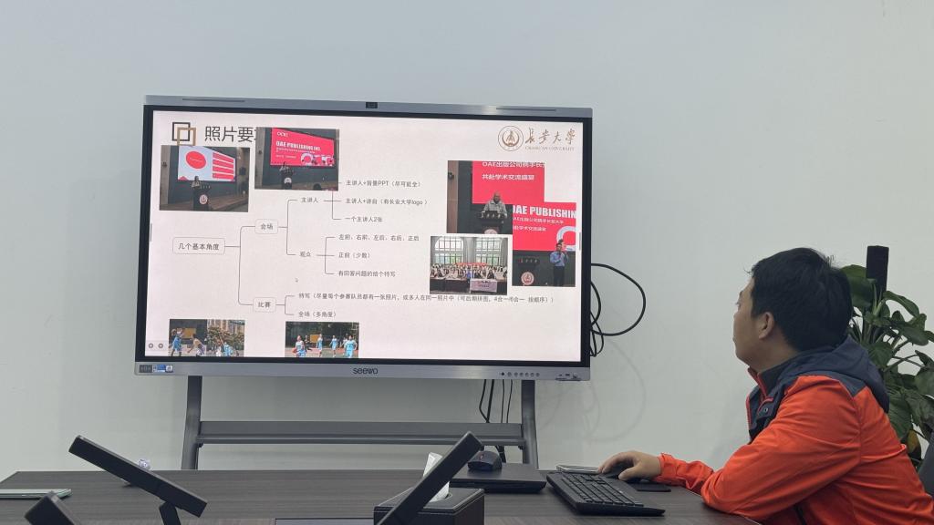 李东峰同学还强调宣传照片的拍摄要注重构图与美感。他结合丰富的图片案例对配图提出了设计要求,并对人物角度、构图思路和移动镜头等方面进行了深入讲解,让大家对视频拍摄、后期剪辑技能有了新的认识。