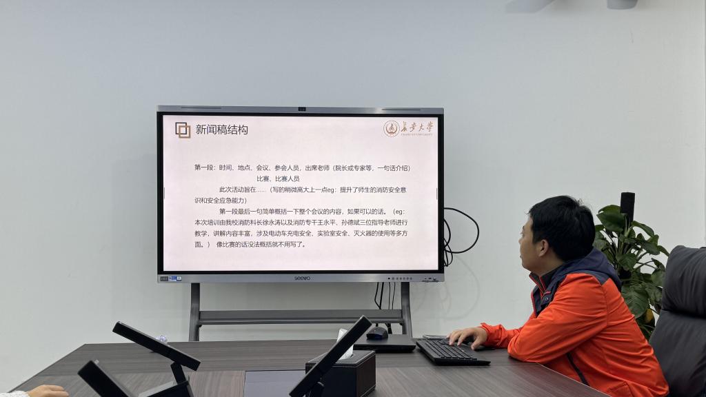 培训会伊始,李东峰同学就稿件、排版、拍摄等方面技巧对大家进行了深入浅出的讲解,围绕新闻稿撰写的规范性问题进行了分析,并从自身经验出发分享了实际写作过程中的常见问题和注意事项。