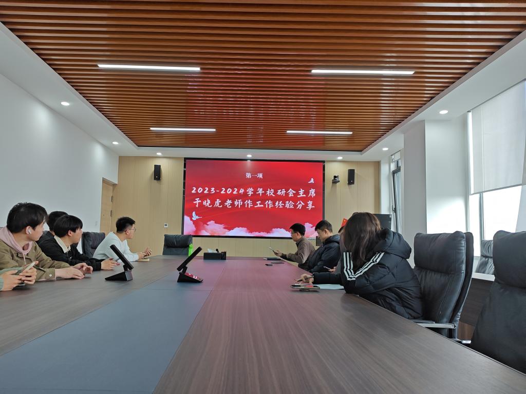 会议伊始,ac米兰官网中文网站团委副书记于晓虎老师作专题工作经验分享,于老师凭借自身丰富的工作经验和深厚的专业知识,为研会成员提供了宝贵的工作方法论指导。他从组织管理、团队协作、目标设定及执行落实等多个维度,深入浅出地讲解了提升研究生会工作效率的策略,以及如何更有效地发挥各部门的作用。于老师的精彩分享为研会成员在今后的工作中提供了有效的思路和方法,极大地鼓舞了大家的工作士气。