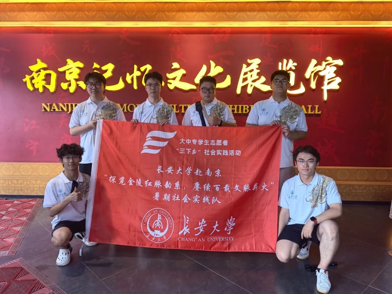 7月13日,长安大学 “探觅金陵红脉韵系,赓续百载文脉薪火” 社会实践团队继续南京文化探寻的社会实践之旅,先后走进中国南京科举博物馆与南京记忆文化展览馆。团队在古色古香的建筑与丰富展品中,既触摸到科举历史与南京文化脉络,更在科举试卷的圈点和文化展品的历史中体悟到科举与文化的传承力量,以实践行动践行青年学子的文化担当。上午成员们走进了南京科举博物馆。这座隐匿在夫子庙秦淮风光带核心区的文化殿堂是中国唯一以科举为主题的大型专题博物馆,将千年科举的风云往事娓娓道来。博物馆地下层叠的建筑结构,如同一卷缓缓展开的竹简,每一级台阶诉说着“读书破万卷”的故事。旋转展台上,唐代的“准考证”——“告身”上,朱砂印章依然鲜红;宋代的试卷封皮上,“糊名”“誊录” 的字样清晰可辨;明代的墨锭泛着幽暗的光泽,侧面刻着考生的姓名。小小的一块墨要磨多少个夜晚才能写完一篇策论?古人说‘十年磨一剑’,他们磨的又何尝不是这锭墨、这支笔?