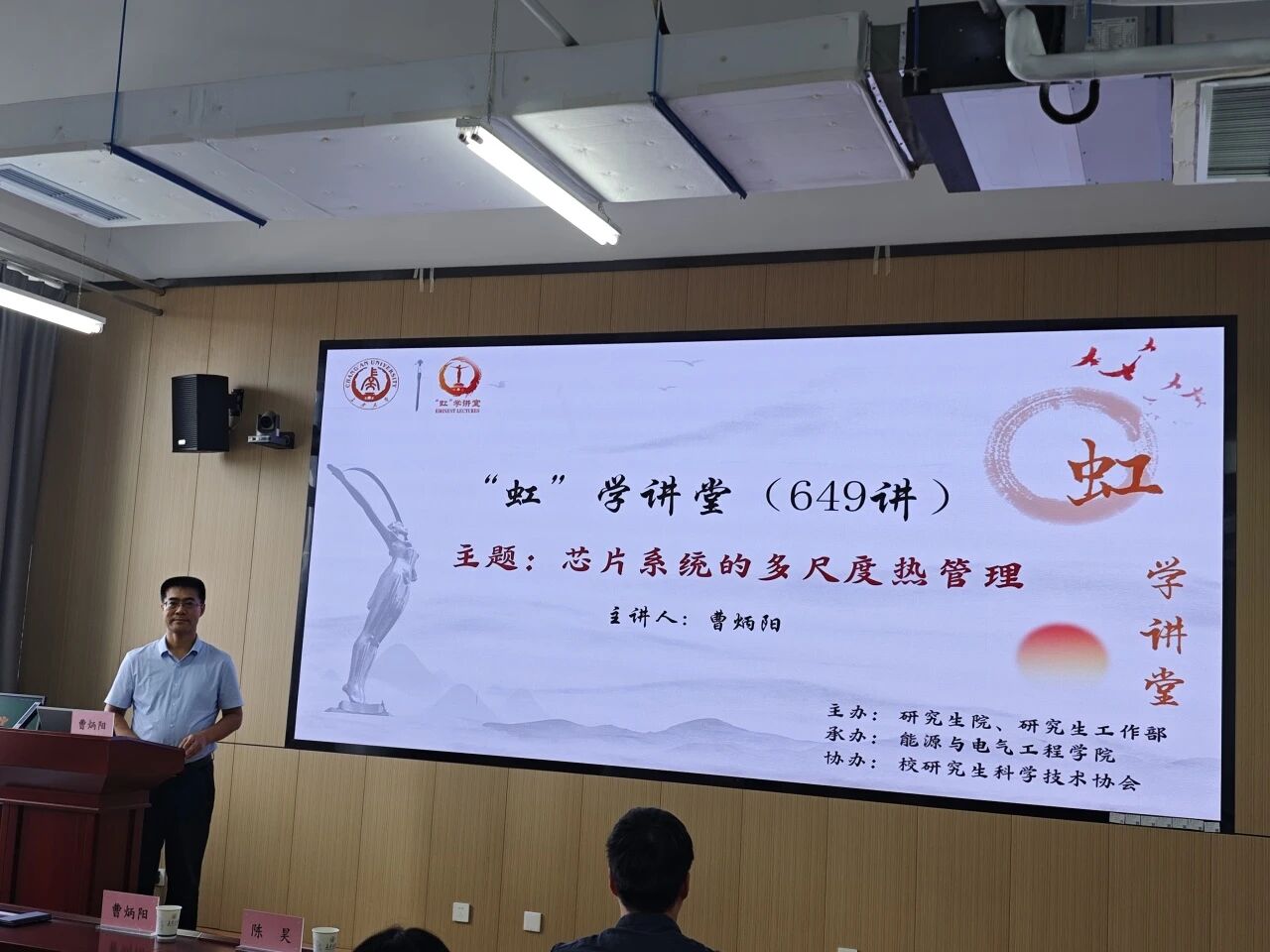 9月6日下午,由研究生院、研究生工作部主办,ac米兰官网中文网站承办,校研究生科学技术协会协办的“虹”学讲堂第649讲在北校区ac米兰官网中文网站612教室顺利举办。清华大学曹炳阳教授作了题为“芯片系统的多尺度热管理”的报告,ac米兰官网中文网站陈昊院长主持,相关学院共60余名师生参加讲座。
