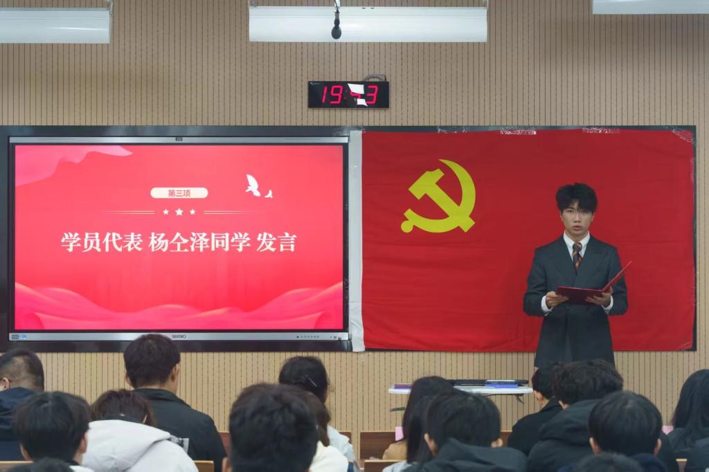 王霄宣读了入党积极分子培训班教学计划和学员考核及学习纪律规定,希望同学们严格遵守相关规定,认真学习党课内容,确保学习成效。杨仝泽作为学员代表进行了发言,表达了自己对本次党课学习的态度和决心,将以更高的标准严格要求自己,争取早日加入。
