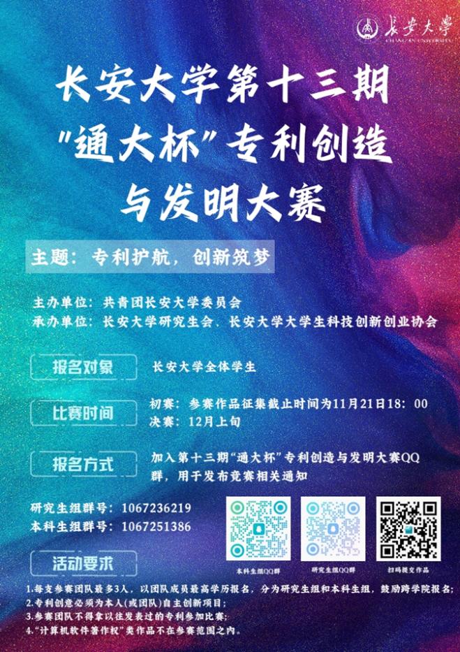 点燃青春才智,绘就创业蓝图!长安大学第十三届“通大杯”专利创造与发明大赛正式启动!