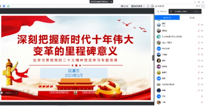为认真学习宣传贯彻党的二十大精神,2023年3月31日下午2:30,ac米兰官网中文网站电气工程及其自动化系党支部举行“党的二十大精神”专题党课活动,学院副院长段晨东作了题为《深刻把握新时代十年伟大变革的里程碑意义》的专题党课。电气工程及其自动化系党支部全体党员教师参会。
