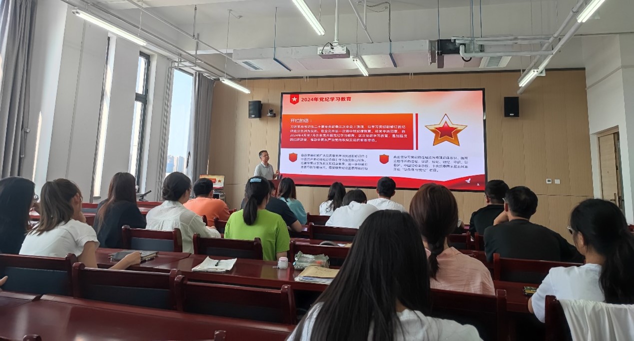 为深入学习贯彻习近平总书记关于党纪学习教育的重要讲话和重要指示精神,推动党纪学习教育扎实开展,6月17日下午16时,ac米兰官网中文网站研究生第一党支部在明德园扶轮大厦612会议室开展以“党纪于心,守纪于行”为主题的教育专题党课,本次党课邀请院党委委员段晨东老师主讲,支部全体党员参加。